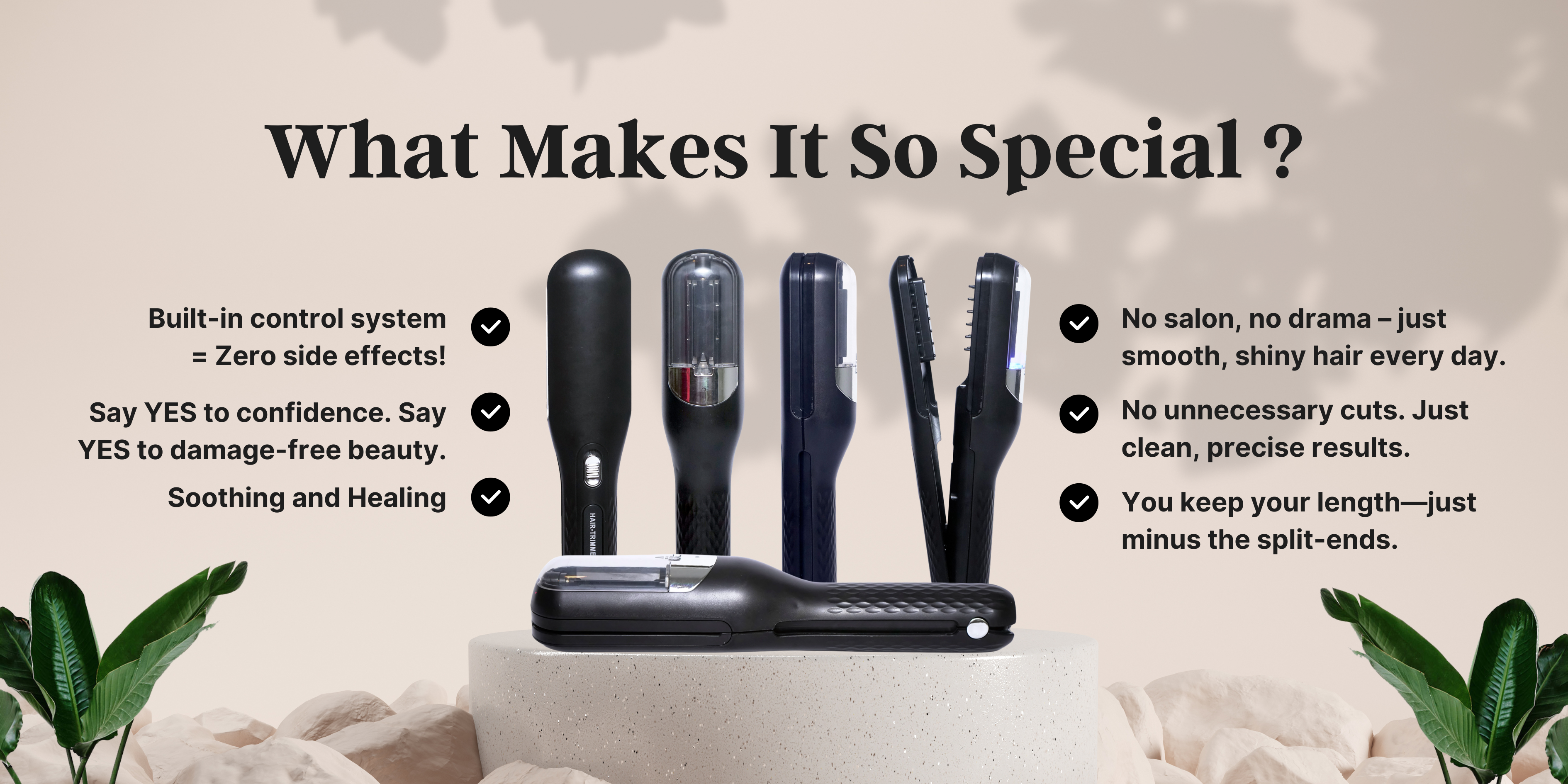 The trimmer is designed to target and remove only the split and damaged ends—preserving your hair’s original length, volume, and style.